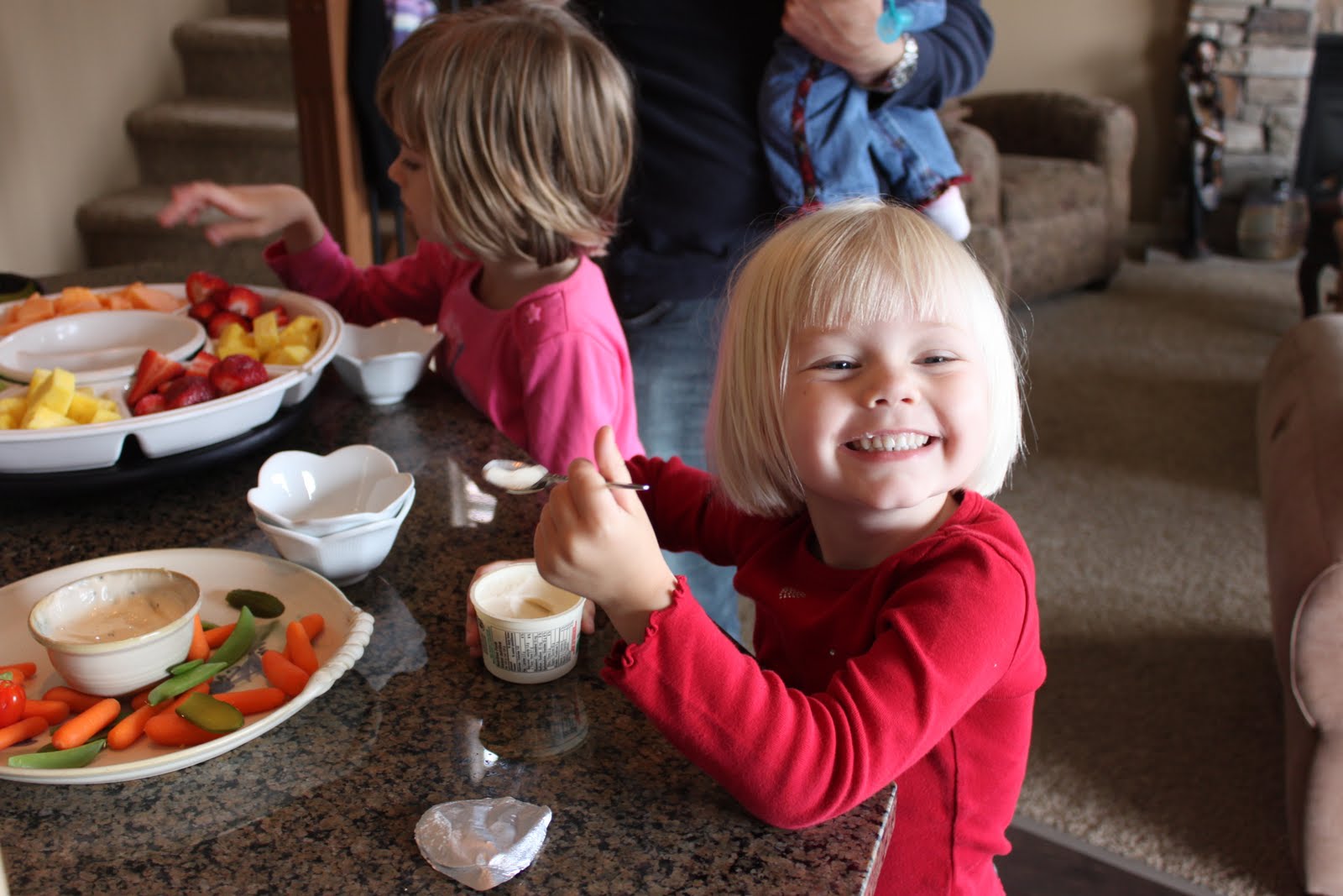 Monday afternoon we headed out to Abbotsford for lunch and play time with Ammee, Poppa, Uncle Paul, Aunt Joni and cousins. Of course, our bottomless pits sat at the counter. Easy access to the food!!